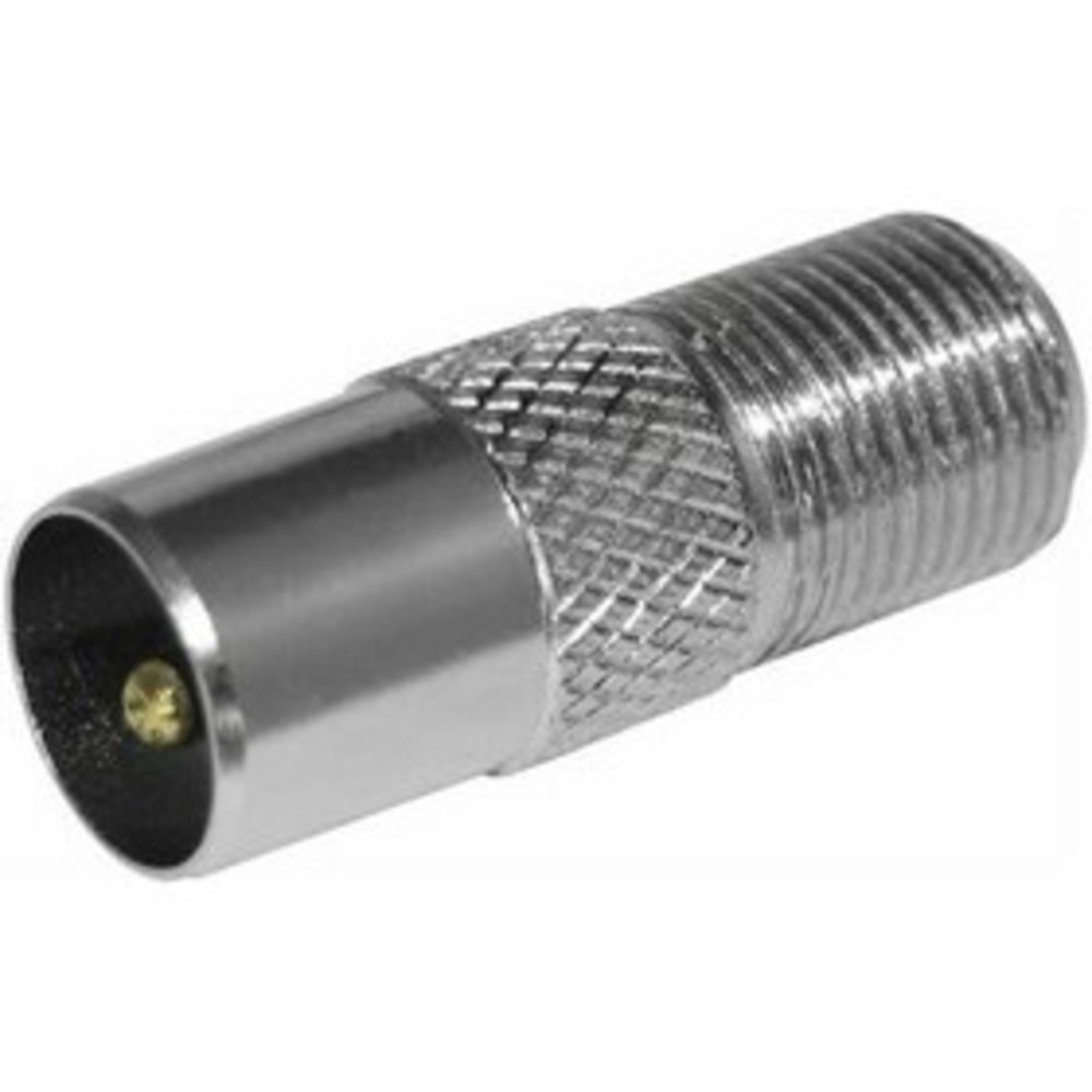 Переходник предназначен для соединения коаксиального кабеля (с предварительно установленным F-разъёмом) с ТВ оборудованиями, такими как (розетки -ТВ, ресиверы, приставки DVB-T2, антенны-ТВ и т.д.). Изготовлен переход из никелированного металла, контакты выполнены с высокими антикоррозийными свойствами.
