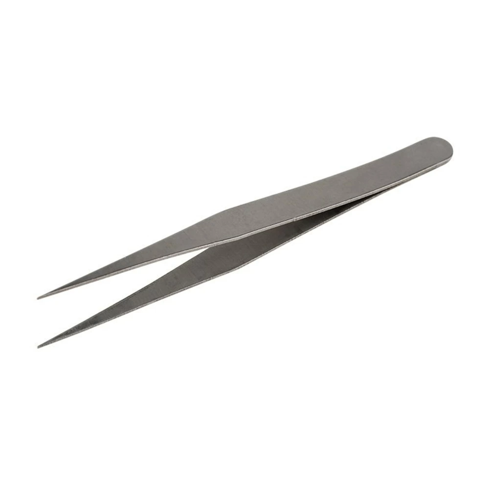 Пинцет представляет собой инструмент широкого спектра применения, применяется для манипуляции различными, небольшими предметами. Они выпускаются различных видов, материалов и назначения. Широко применяются при паяльных работах, в филателии, медицине, биологии, химии, косметической и др. сферах. Длина: 115 мм Форма: прямое отшлифованное острие