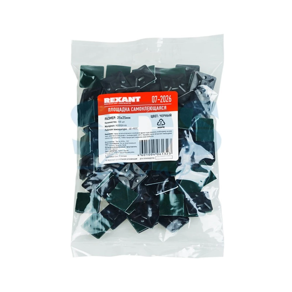 Площадка для кабеля Rexant 07-2026 25 х 25 мм, черная (100 штук)