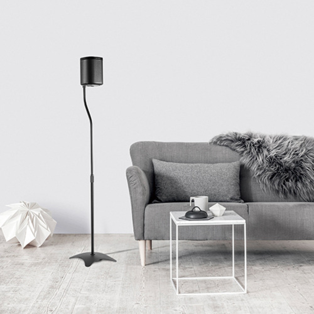 Напольная стойка SS-01 идеально подходит для домашних сателлитных колонок весом до 4,5 кг. Стойку можно регулировать по высоте в диапазоне 680-1100 мм, чтобы обеспечить наиболее оптимальное распределение звука. Стальная конструкция стойки образует прочный каркас, обеспечивающий устойчивость при использовании, а специальное утяжеленное основание предотвращает опрокидывание. Чугунное основание имеет скрытый канал для проводов, что придает аккуратный вид установке. На эту стойку можно установить колонки с одной резьбой 5 мм и отверстием для ключа на задней панели.