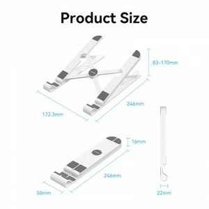 Это универсальное устройство для удобного расположения ноутбука. Регулируемый угол наклона подставки, позволяет удобно расположить устройство в девятирежимах. Благодаря компактным размерам и складному механизму подставка легко поместится в любой багаж. Прорезиненные вставки позволят гаджету не скользить по опоре, а прочный механизм обеспечит износостойкость в процессе эксплуатации.