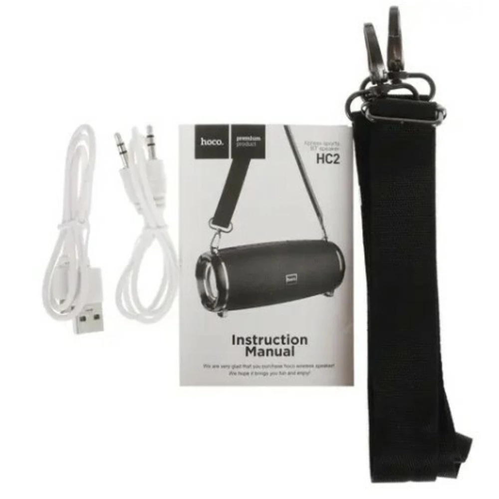 Портативная колонка HOCO HC2 выполнена в прочном защищенном корпусе по стандарту IPX5, что позволяет прослушивать музыку дома или на улице в различных погодных условиях. Для подключения к источникам звука предлагаются беспроводной интерфейс Bluetooh, порт USB, разъем аудио AUX, считыватель карты памяти MicroSD. Из функциональных особенностей отмечаются FM-радио и возможность ответа на входящие звонки. Полного заряда аккумулятора достаточно для 6 часов автономной работы аудиосистемы. В комплекте с HOCO HC2 поставляются переносной плечевой ремень, аудиокабель и кабель питания.