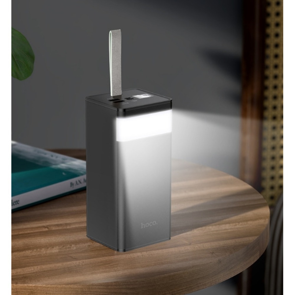 Портативный аккумулятор Hoco J86A, 50000mAh, 3A, черный, 6931474759238 с функцией настольной лампы оснащен LED цифровым дисплеем. Материал: ABS + огнеупорный PC + литий-полимерная батарея.