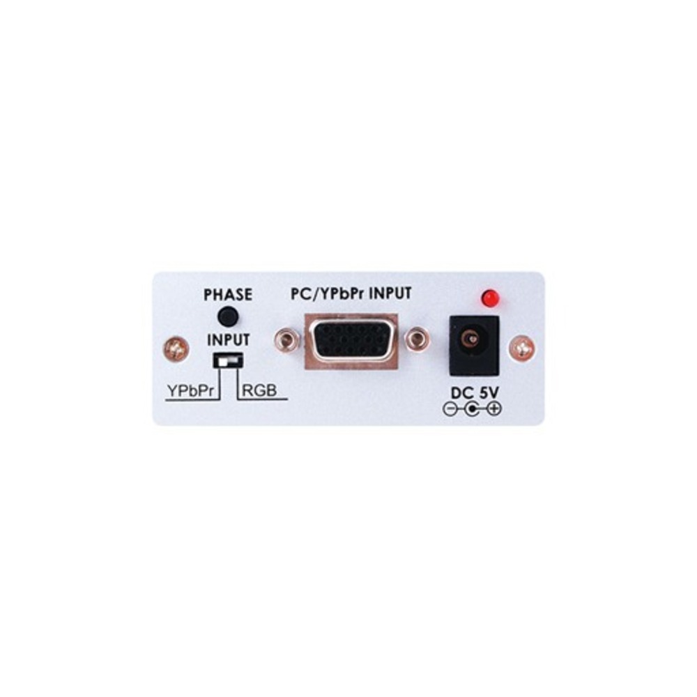 CP-1261HS – преобразователь видеосигналов YUV/RGBHV и аналогового стерео аудио в сигнал HDMI. Устройство производит аналогово-цифровое преобразование видео и аудиосигнала, эмбеддирует аудио, после чего выдает сигнал на выход HDMI. Имеет встроенный корректор фазы для качественного отображения сигнала, конвертер цветового пространства сигнала из YCbCr в RGB. Прибор выполнен в компактном и надежном металлическом корпусе серебристого цвета.