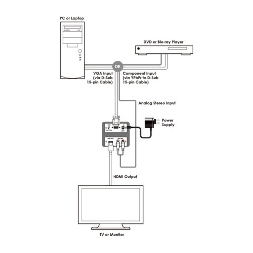 Тип Преобразователь сигналов YUV / RGBHV и стереоаудио в сигнал HDMI