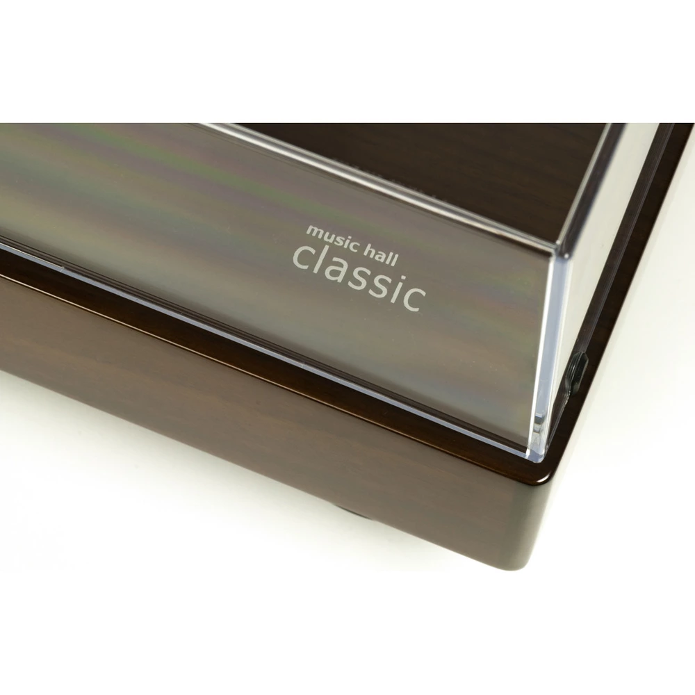Вдохновленный вертушками прошлого, Music Hall Music Hall Classic созданный с использованием лучших современных технологий. Классический проигрыватель виниловых пластинок оснащен встроенным фонокорректором и фонокорректором, работает в полуавтоматическом режиме и отделан шпоном из темного орехового дерева.