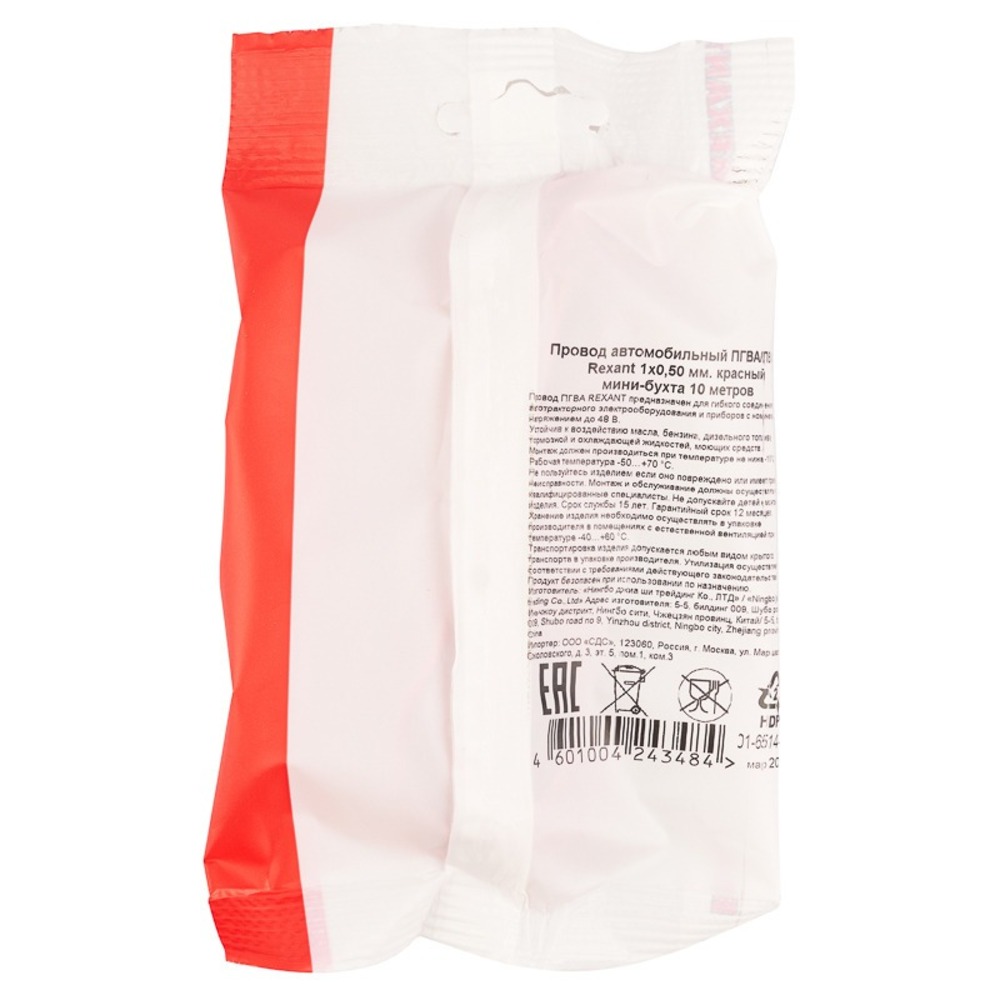 Провод автомобильный Rexant 01-6514-2-10 ПГВА/ПВАМ REXANT 1х0,50 мм красный, мини-бухта 10 метров
