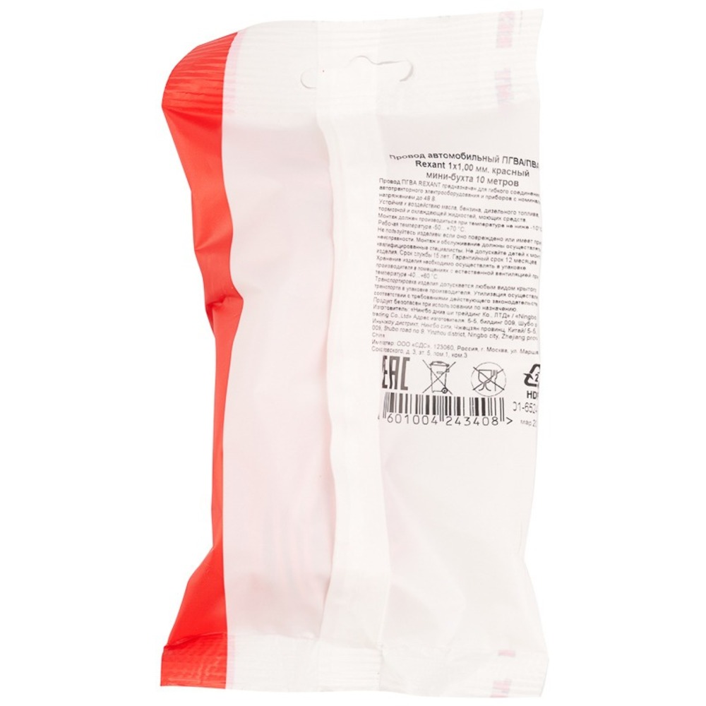 Провод автомобильный Rexant 01-6524-2-10 ПГВА/ПВАМ REXANT 1х1,00 мм красный, мини-бухта 10 метров