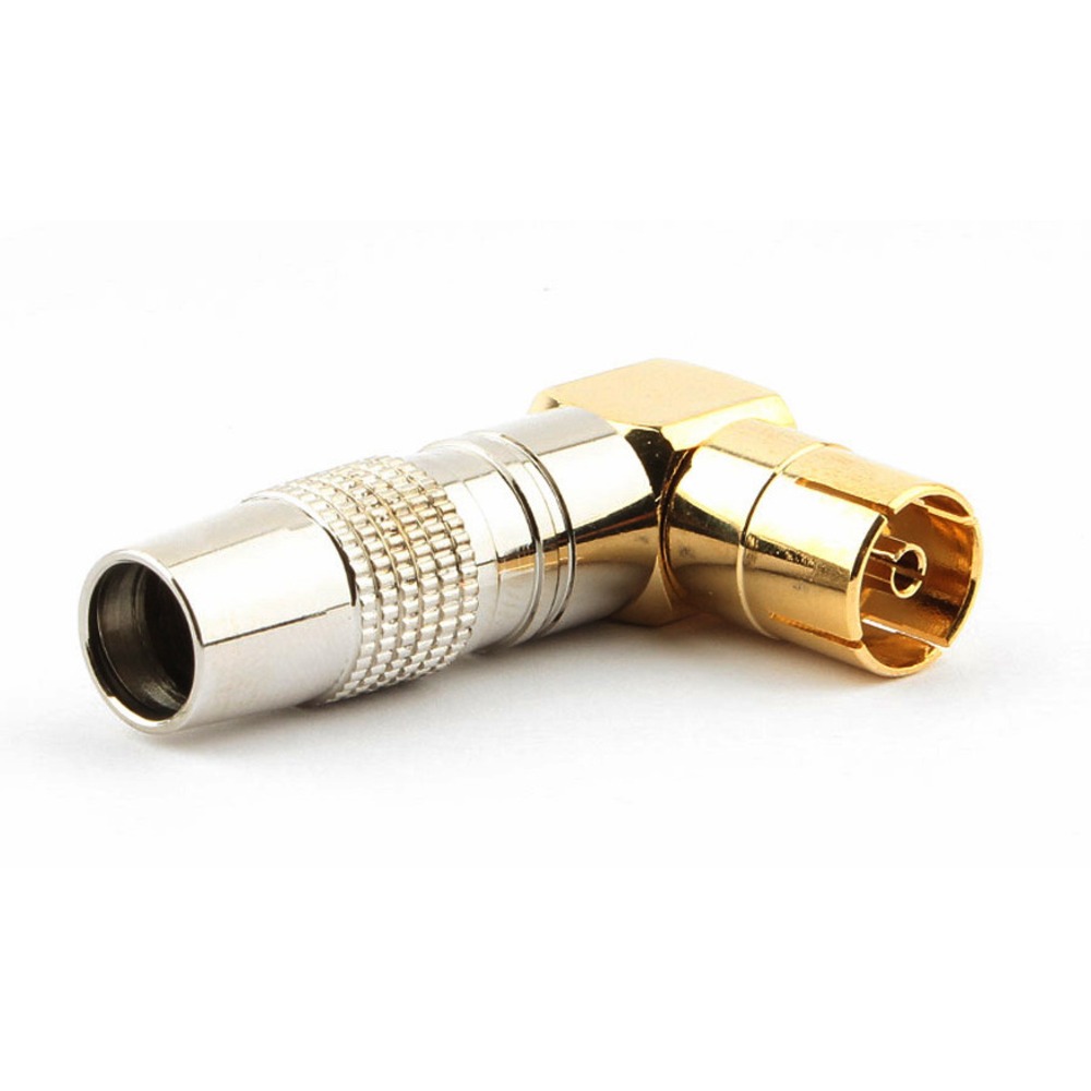 Угловой ТВ разъём Cablexpert TVPL-08 для ТВ кабеля RG6 (75 Ω) позволяет осуществлять монтаж без пайки контактов