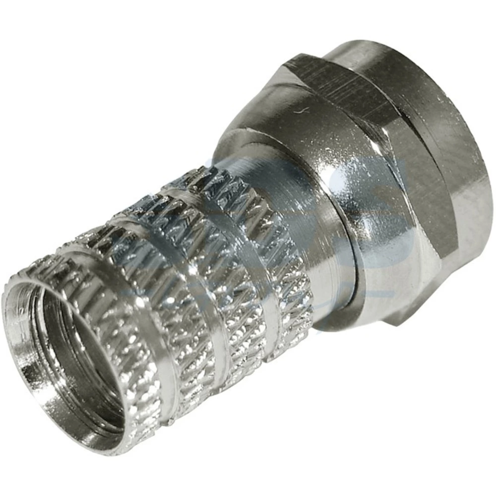 предназначен для соединения коаксиального кабеля волновым сопротивлением 75 Ом с телевизионным и видеооборудованием (ресиверы, телевизоры, всевозможная видеоаппаратура и т.д.). Разъем данного вида не имеет непосредственного штекера, поэтому роль штекера выполняет центральная жила кабеля, что позволяет избежать дополнительных потерь сигнала. F-коннектор изготовлен из никелированного сплава меди (биметалл). Разъем устанавливается на кабель методом накрутки гильзы разъема на внешнюю оболочку кабеля, после соответствующей зачистки контактов, и не требует применения каких-либо специальных инструментов. F-штекер выступает в роли своеобразного экрана за счет накручивания на оплетку кабеля для выполнения роли электрического контакта. Такой высокочастотный соединитель имеет ряд положительных преимуществ: