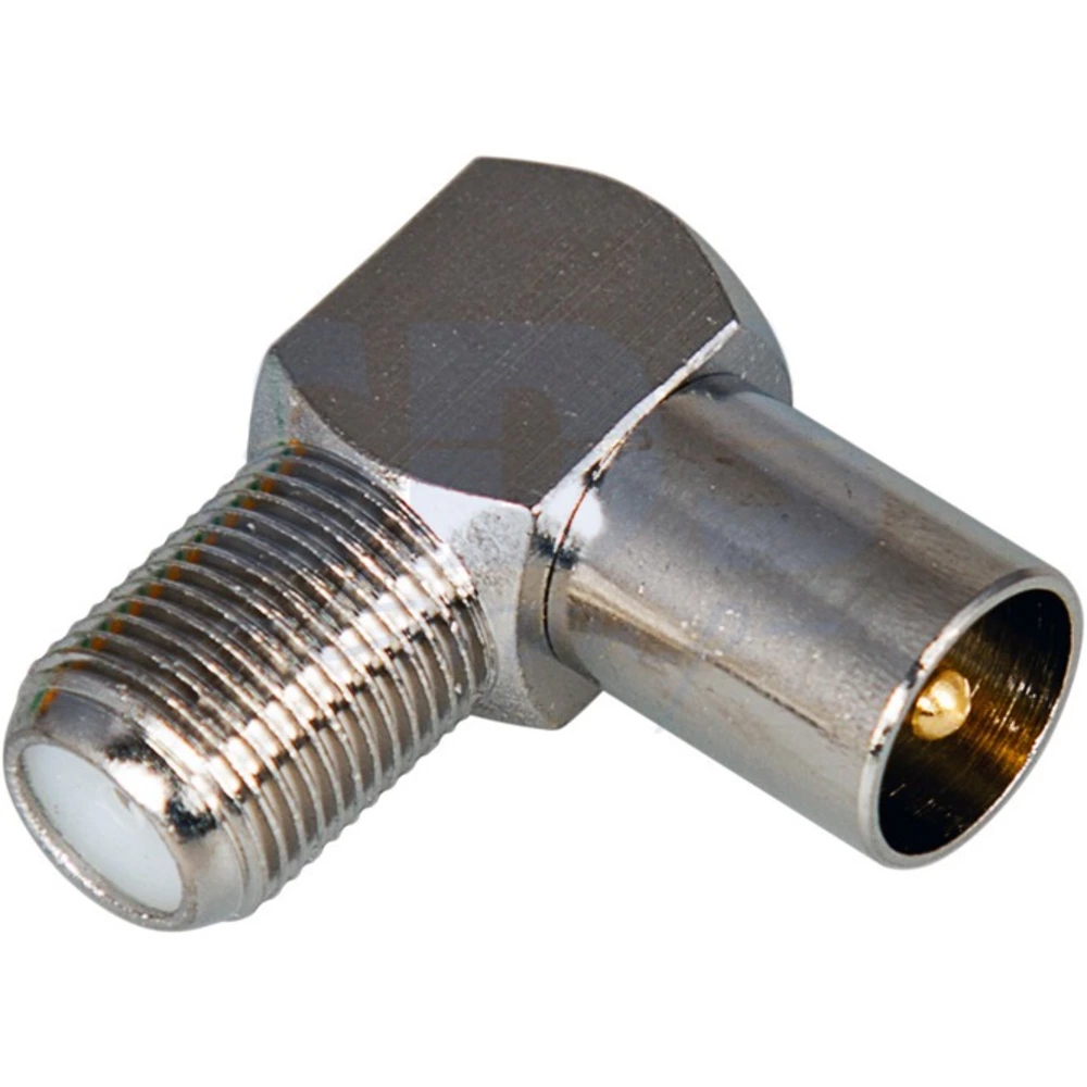 предназначен для подключения эфирного, спутникового и кабельного телевидения с помощью радиочастотного кабеля волновым сопротивлением 50 или 75 Ом. Отличительной особенностью переходника является угловая форма, позволяющая подсоединять провода исключая сильных перегибов в ограниченном пространстве. С одной стороны располагается гнездо F-разъема, а с другой штекер ТВ-разъема. Изготовлен переход из никелированного сплава первичной меди (биметалл), что гарантирует минимальный уровень потерь при прохождении сигнала. Переход соединяется с кабелем методом накрутки F-коннектора, после соответствующей зачистки контактов радиочастотного кабеля, не требуя в ходе монтажа применения каких-либо специальных инструментов. Такой высокочастотный соединитель имеет ряд положительных преимуществ: