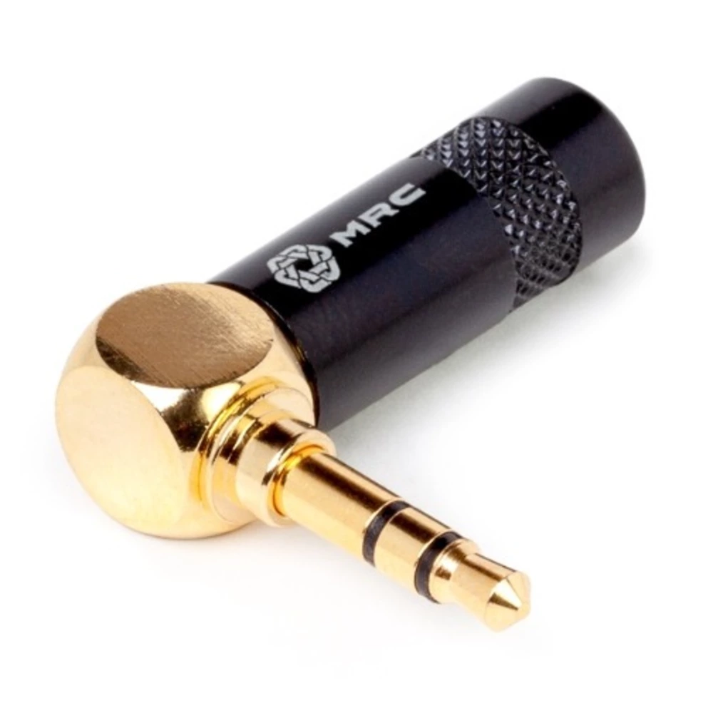 Кабельный разъем mini Jack 3.5 мм, угловой, 3-х контактный (стерео) , черный металлический корпус, контакты - покрытие золото, под пайку, на кабель диаметром до 6.5 мм