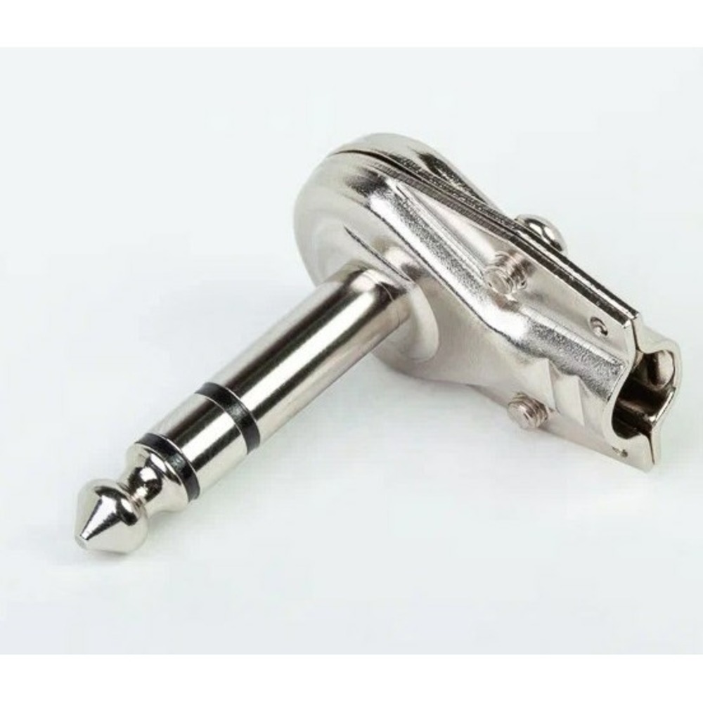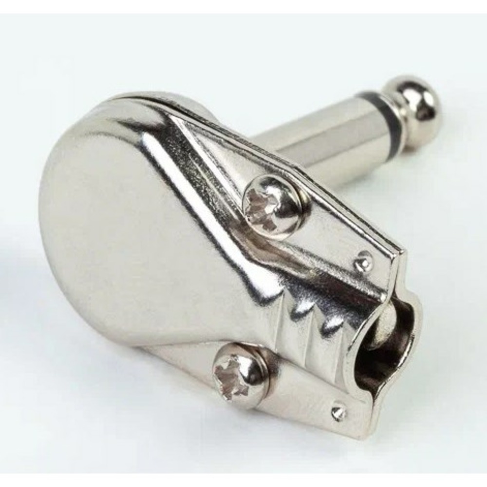 Тип Кабельный разъем 1/4" Jack 6.35 мм, угловой, плоский, 2-х контактный (моно) <штекер/папа>, металлический корпус, контакты - покрытие никель, под пайку, на кабель диаметром (4.0-7.0 мм), подходит для использования с "педалями"
