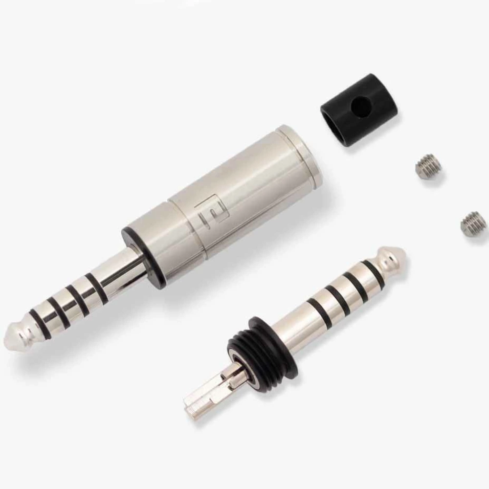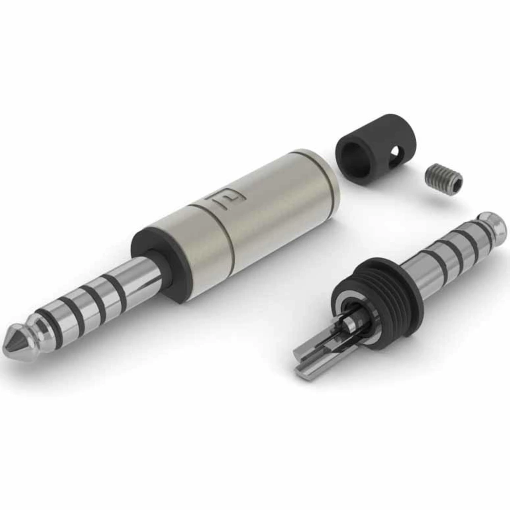 4-х полюсные металлические контакты (правый, левый, положительный, отрицательный) одинакового сечения и размера. Благодаря такой конструкции контактов разъёма припаивать кабель очень легко и удобно.