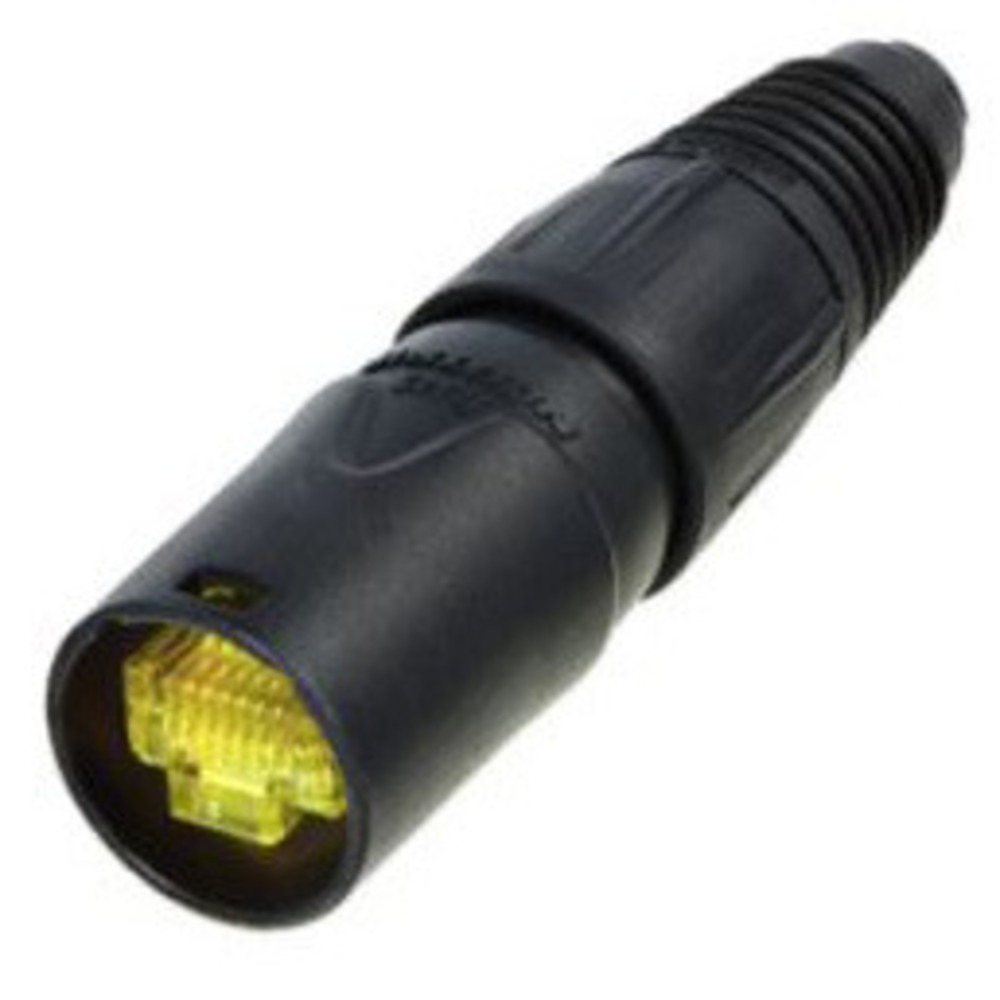 Стандартный разъем RJ45 размещен в корпусе разъема XLR, который на протяжении многих лет служит стандартом для звуковых аналоговых и цифровых соединений. Разъем EtherCON™ удовлетворяет техническим требованиям, предъявляемым к устройствам линий витой пары кат.5e. Может использоваться с 4-парным кабелем диаметром до 8.0 мм, что позволяет монтировать его, как на эластичный мобильный патч-кабель повышенной надежности, так и на обычный UTP кабель. Хвостовик разъема неразборный, что подразумевает установку разъема на кабель до обжатия модуля RJ45.