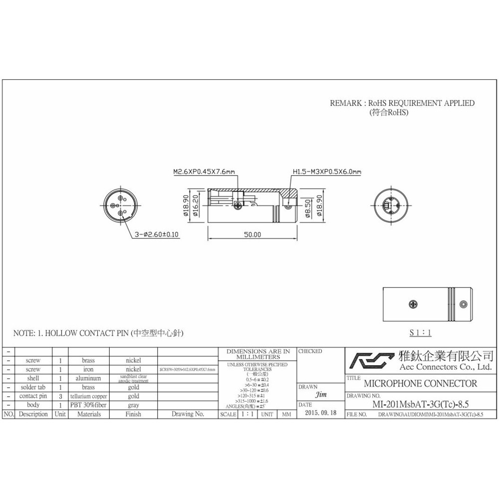 AEC MI-201М высококачественный и бюджетный балансный коннектор Male, внешний корпус которого выполнен из латуни и покрыт никелем.