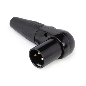 Кабельный разъем XLR, 3-х контактный <штекер/папа>, угловой, E-серия, 5 положений вывода кабеля, черный металлический корпус, контакты - покрытие золото, под пайку, полиуретановый колпачок на кабель диаметром (3.5-8.0 мм)