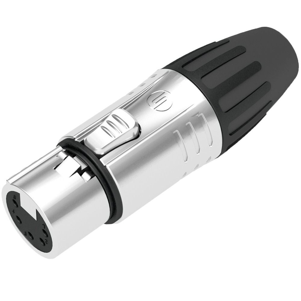 Кабельный разъём XLR "мама", 5-ти контактный. Хромированный корпус, контакты - покрытие серебро. Для кабеля диаметром 3.5-6 мм.