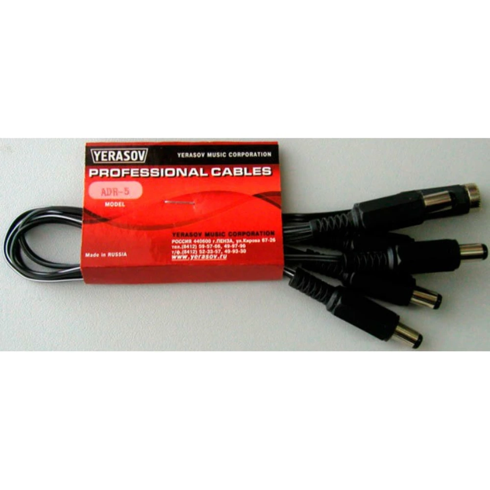 Yerasov ADR-5 Разветвитель адаптера питания, на 5 педалей. Разветвитель адаптера питания ADR-5 позволяет подключить к питанию от сетевого адаптера AD9-100 или AD9-400 до 5-ти гитарных педалей. Расстояние между штекерами 20см.