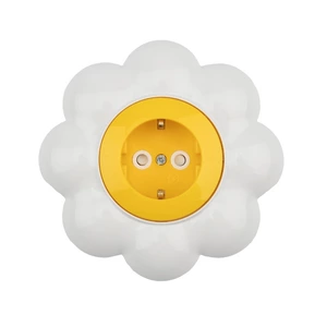 Розетка одноместная Kranz KR-78-0622 HAPPY Ромашка скрытой установки, с заземлением и защитными шторками, желтая/белая