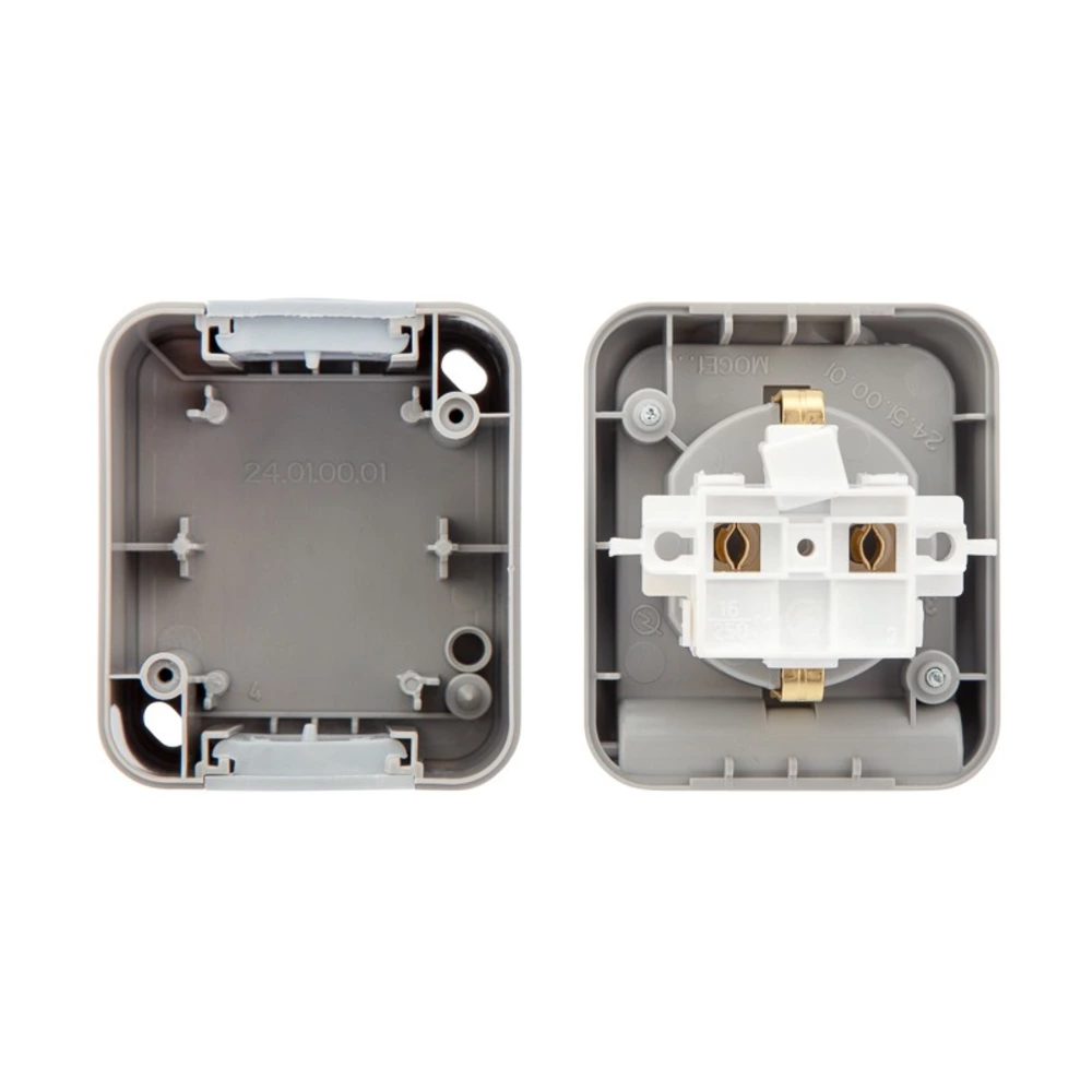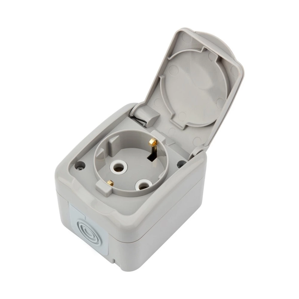 Розетка одноместная Mini OG IP54, с заземлением, о/у, серая KRANZ предназначена для организации электроснабжения не только в сухом помещении, но и во влажной и пыльной среде. Благодаря лаконичной форме корпуса, она с легкостью впишется в любой интерьер. Защитная крышка на лицевой поверхности защищает розетку от попадания брызг воды. Отлично подойдет для дачи, ванной комнаты, бассейна и улицы, при наличии навеса, защищающего от прямого попадания влаги. Корпус механизма розетки выполнен из абсолютно негорючего материала – керамики. Розетка проста и легка в установке. Технические характеристики: Напряжение: 220-250 В Частота тока: 50 Гц Номинальный ток: 16 А Степень защиты: IP54 Сечение проводников: 1,5-2,5 мм² Рабочая температура: -25...+40 °С