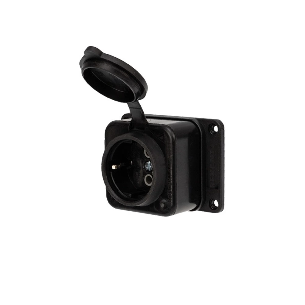Электрическая розетка из каучука предназначена для использования в сложных эксплуатационных условиях и широко применяется в производстве, строительстве и машиностроении. Она легко монтируется, имеет высокую надежность и долгий срок службы. Ударопрочный разборный корпус выполнен из каучука, устойчив к механическому, химическому воздействию и перепаду температур. Розетка оснащена защитной крышкой. Характеристики: Напряжение: 250 В Номинальный ток: 16 А Класс защиты: IP54 Заземление: есть Корпус: каучук Сечение проводников: 0,75-2,5 мм² Количество розеток: 1 Контактная группа: латунь Рабочая температура: -40...+ 80 °С Тип полюсов: 2Р+РЕ