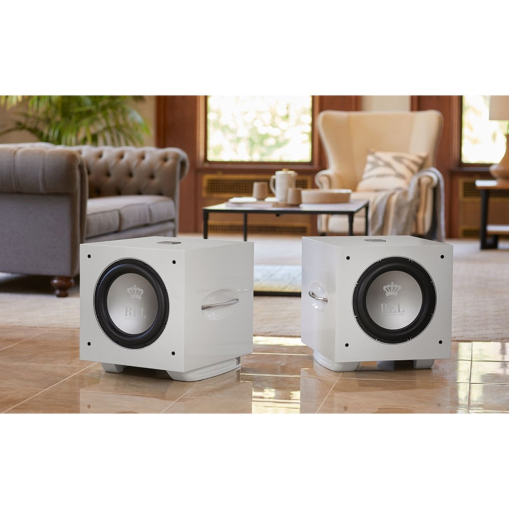 Низкочастотный динамик в REL S812 работает в паре с пассивным излучателем SuperProgressive. Его диффузор выполнен из карбона и обладает рабочим ходом в 30 мм. Такое сочетание обеспечивает REL S812 глубокие и проработанные басы, а также упрощает размещение сабвуфера в комнате.