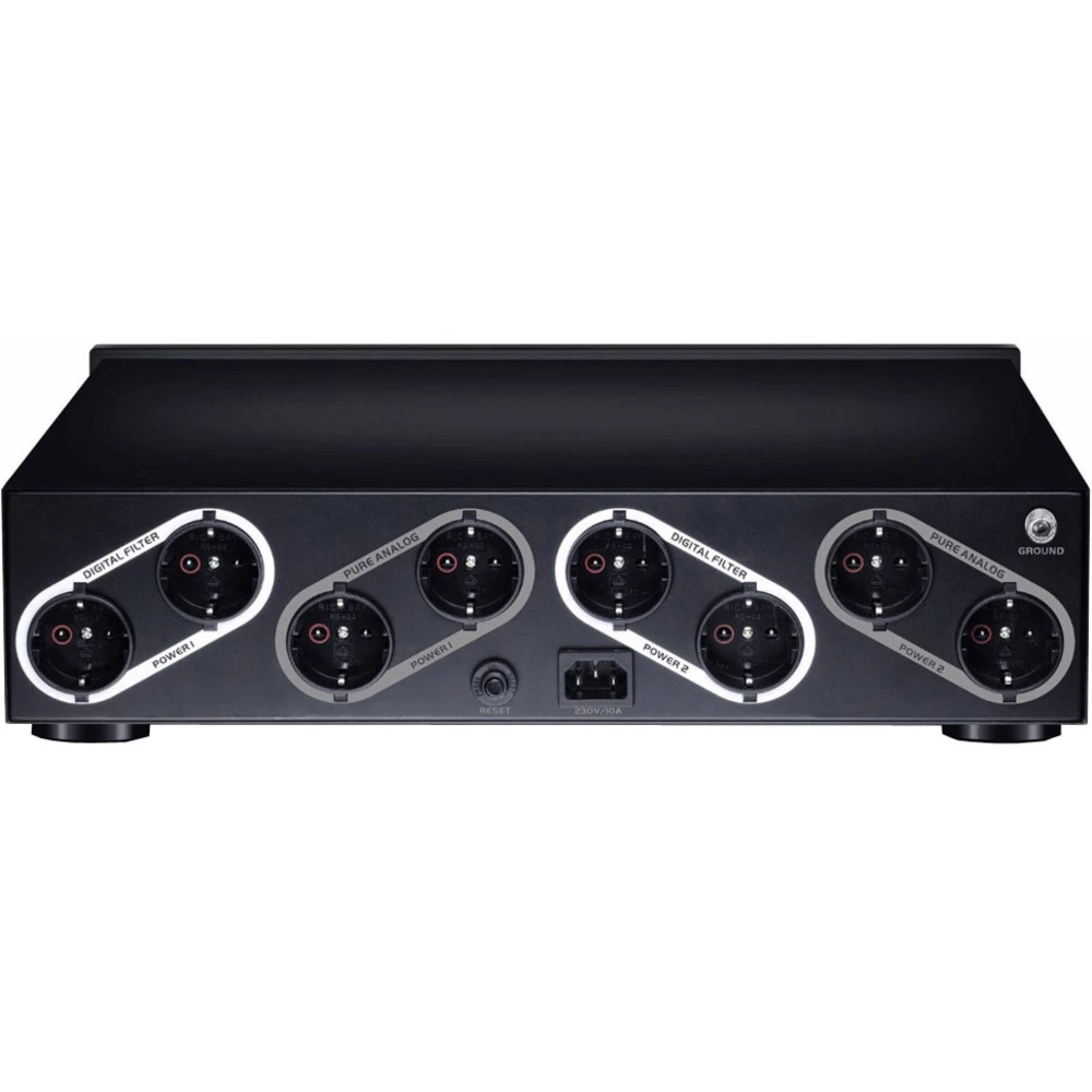 Powerstation 909 от Oehlbach - это превосходно выполненная многоместная розетка в исполнении для 19" стойки/стола, отвечающая даже самым взыскательным требованиям высокого класса. Он имеет в общей сложности восемь отдельных гнезд, состоящих из четырех цифровых (фильтрованных) и четырех аналоговых (нефильтрованных) гнезд. Кроме того, можно подключить две отдельные группы розеток, каждая из которых состоит из двух фильтрованных и двух нефильтрованных розеток. Чтобы убедиться, что устройства подключены к правильной фазе, Powerstation 909 имеет маркировку фаз на каждой отдельной розетке. Правильное подключение обозначается красным светом индикатора. Это единственный способ эффективно избежать потенциальных уравнительных токов, которые оказывают негативное влияние на изображение и звуковую информацию. Кроме того, эта исключительная розетка оснащена функцией задержки (1 секунда) для сетевого выключателя, что предотвращает неприятные пики тока при включении электростанции. Переключаемый дисплей, встроенный в массивную алюминиевую переднюю панель, предоставляет пользователю информацию о потребляемой мощности и текущем напряжении. Внутренний проводник сечением 3,3 мм², состоящий из высокочистой бескислородной меди, представляет собой настоящую высококлассную внутреннюю проводку и гарантирует стабильное электропитание в любой ситуации - всегда гарантировано, даже для компонентов с высокими требованиями к мощности.