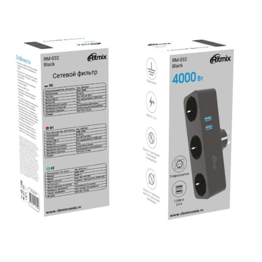 - встроенная функция Smart IC, за счет которой сетевой фильтр автоматически распознает подключенное устройство и подает оптимальный ток питания для быстрой и безопасной зарядки; два выхода USB подходят для зарядки и питания смартфонов, планшетов, беспроводных наушников, цифровых камер , умных часов и т.д.;
