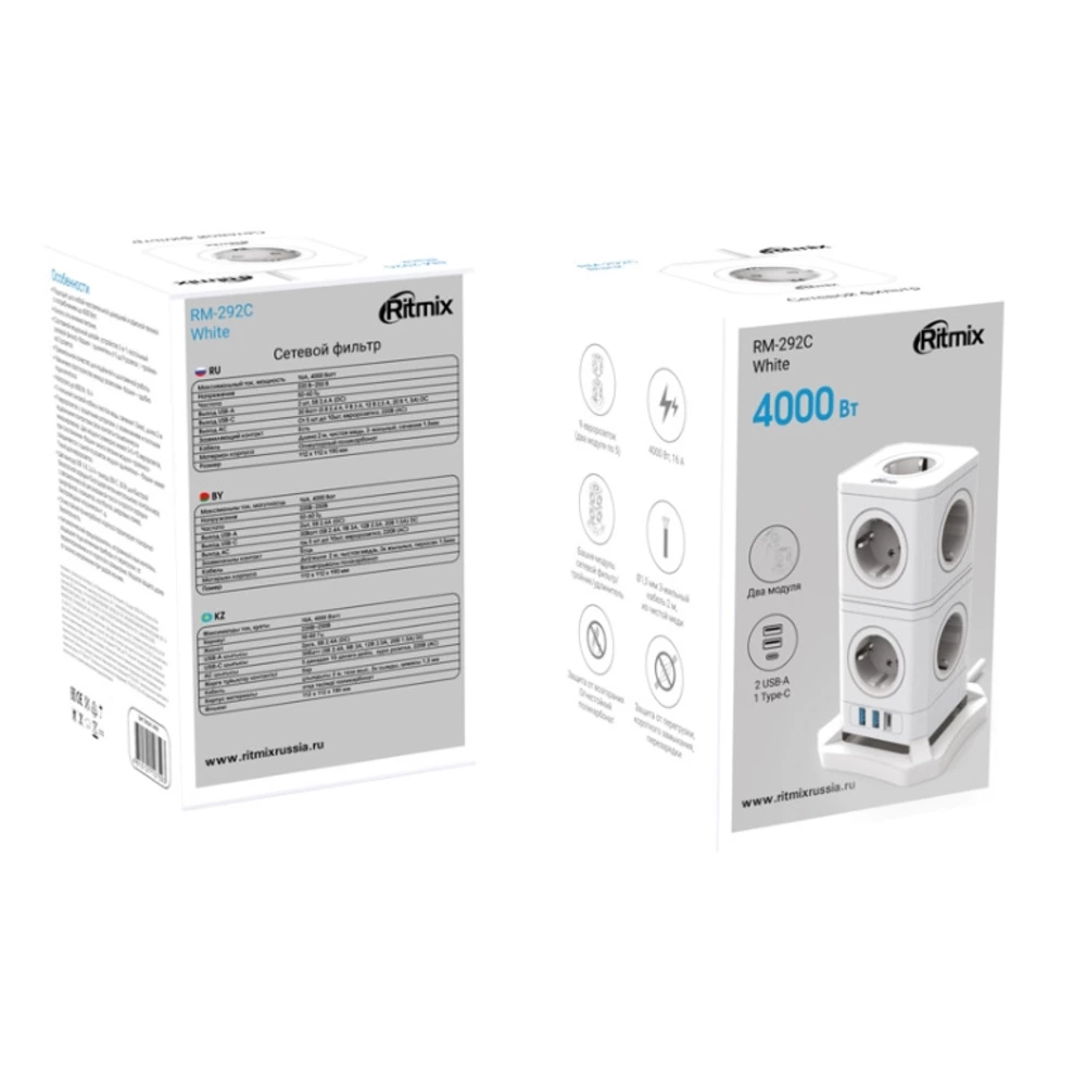 Удобно расположенных розеток недостаточно, но необходимо подключить несколько устройств одновременно, в том числе для зарядки от USB? Розетка находится далеко или очень низко под рабочим столом? В комплекте с новыми наушниками, колонкой или смарт часами идет только USB кабель и нет USB адаптера? Во всех этих ситуациях вас точно выручит универсальный модульный сетевой фильтр RM-292С. Он отлично подходит для любой мобильной, домашней или офисной техники с суммарным потреблением до 4000 Вт. Сетевой фильтр состоит из двух разъёмных модулей, в каждом по 5 евророзеток. Съемный модуль имеет евровилку, а базовый подключается к сети встроенным кабелем длиной 2 м. Кроме пяти евророзеток в нем присутсвуют два выхода USB А и один Type-C. В собранном виде у модели доступно 9 евророзеток и 3 порта USB. А при использовании модулей раздельно вы получите уже 10 евророзеток. Премиальное качество сборки и компонентов обеспечит надёжную и долговечную работу.