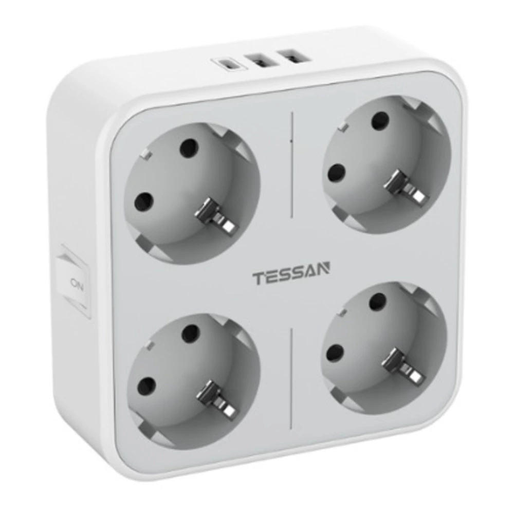 Сетевой фильтр с 4 розетками 220 В, 2 USB и 1 Type-C портами и кнопкой питания. Эргономичный дизайн. LED индикатор. Огнеупорный материал корпуса. Плотные разъёмы со шторками. Противопожарная защита