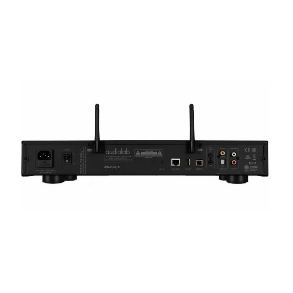 Для подключения AudioLab 7000N Play к домашней сети можно воспользоваться Ethernet или Wi-Fi-соединениями. После подключения стример получает доступ к музыкальному контенту, хранящемуся на сетевых устройствах. Вся фонотека представлена в приложении в удобном для пользователя виде. Здесь можно включать воспроизведение композиции, целого альбома или составлять собственные плейлисты. Технология DTS-Play Fi позволяет передавать музыку с портативных устройств (смартфонов, планшетов) с качеством более высоким, чем обеспечивает Bluetooth-соединение.