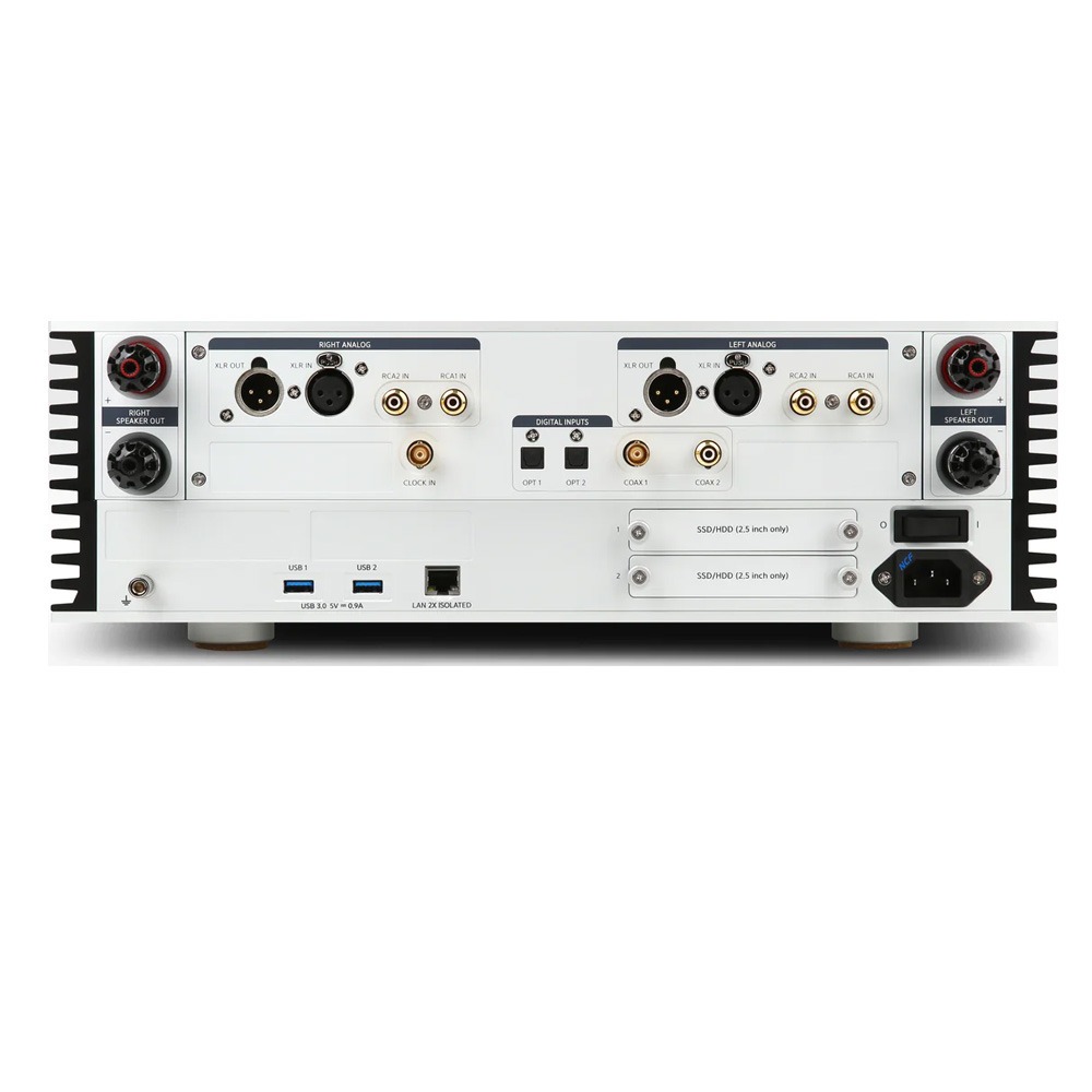 Aurender AP20 – стример, ЦАП и усилитель. Южнокорейская компания Aurender, известная своими сетевыми компонентами ультравысокого класса, представляет устройство «всё в одном» Aurender AP20 – интегральный усилитель с блоком ЦАП и сетевым стримером. Для создания законченной стереосистемы к новинке достаточно добавить лишь пару пассивных колонок. Есть здесь и усилитель для наушников. Аналоговая коммутация включает балансный на разъёмах XLR и два несимметричных на RCA входа, а также балансный выход с предварительного усилителя, позволяющий использовать внешние усилители мощности, либо активные АС.