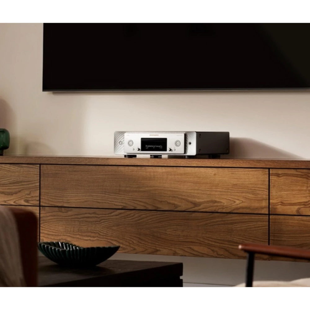 Marantz CD 50n — это многофункциональный цифровой аудиоплеер, сочетающий в себе высокопроизводительный проигрыватель компакт-дисков с функциями сетевого аудио экосистемы HEOS, функциями Bluetooth и USB-DAC. Кроме того, это первый аудиоплеер Marantz, поддерживающий HDMI ARC (возвратный аудиоканал). Звук с телевизора, проигрывателя дисков Blu-ray, игровой консоли и т. д., подключенных к телевизору, можно воспроизводить с помощью высококачественной схемы цифро-аналогового преобразования Marantz CD 50n конвертируемую в аналоговый выход усилителя. Основой стримингового функционала в данной модели является технология HEOS. Она обеспечивает доступ к большому количеству популярных online-сервисов, интернет-радио, а также музыкальным файлам, хранящимся на доступных сетевых накопителях. Кроме того, HEOS – это еще и очень удобная мультирум-платформа, в которой может быть задействовано множество совместимых устройств, а управление производится через фирменное мобильное приложение. Сетевое подключение может производиться по Ethernet или Wi-Fi.