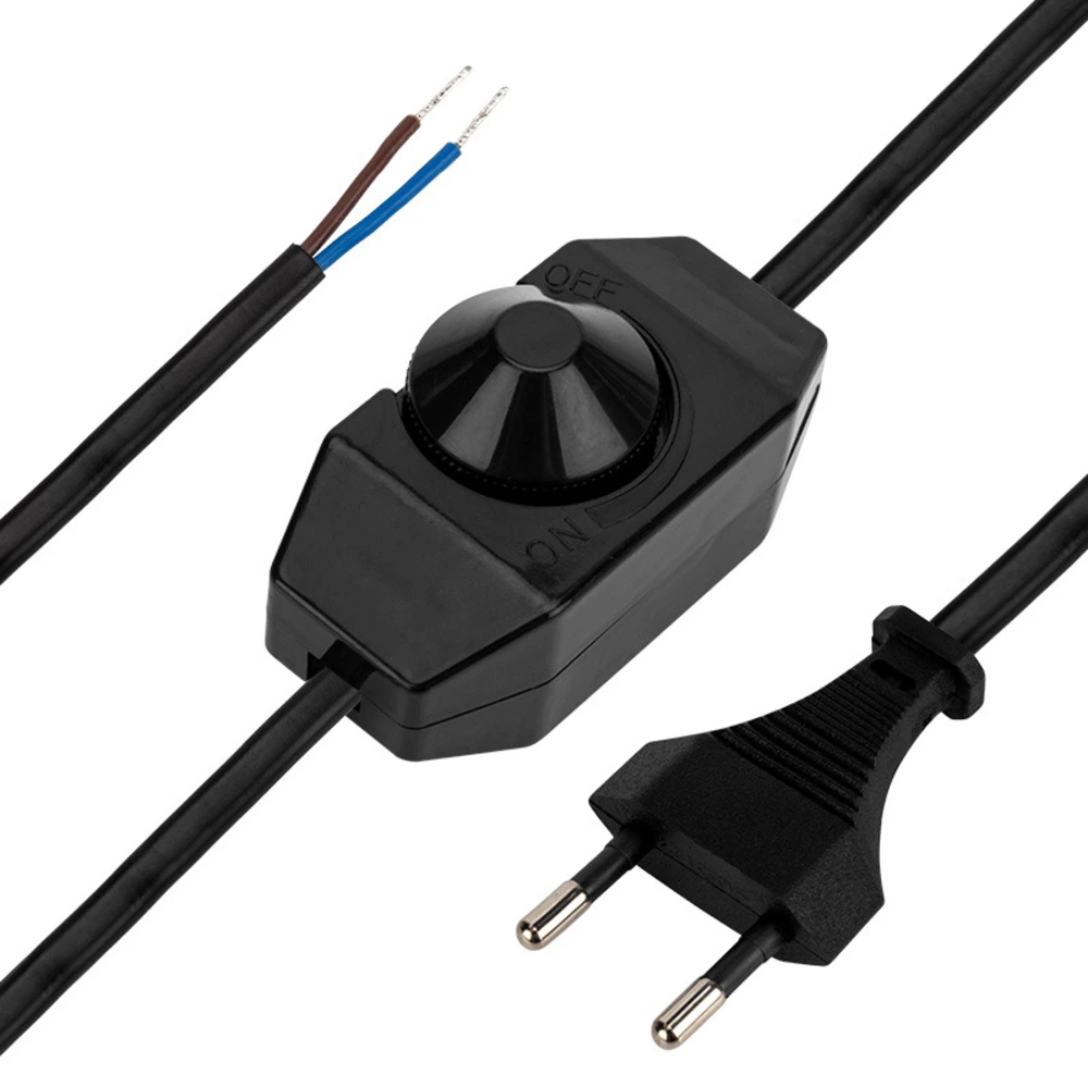 Сетевой шнур с диммером предназначен для подключения бытовых приборов, осветительной техники и т. д. Шнур состоит из провода ШВВП сечением 0,75 мм², укомплектованного литой неразборной плоской вилкой (Евро), номинальным током 2 А, с подготовленными (зачищенными и лужеными) контактами, посередине провода расположен диммер в корпусе из ABC пластика. Напряжение: 250 В Номинальный ток: 2 А Сечение проводников: 2х0,75 мм² Длина шнура: 2 м Цвет: черный Диммер: да