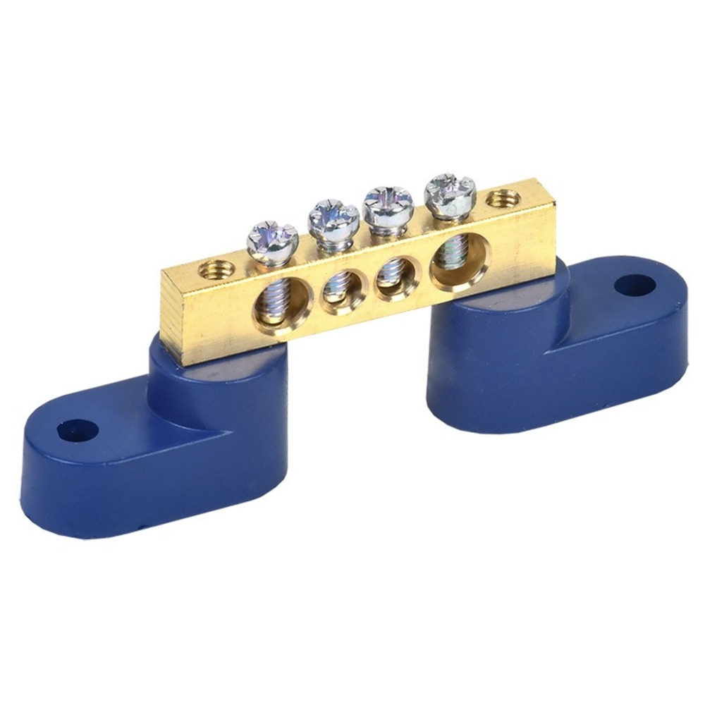 Шина «N» нулевая 6х9 мм на двух угловых синих изоляторах Rexant 11-2324 4 группы (20 штук)