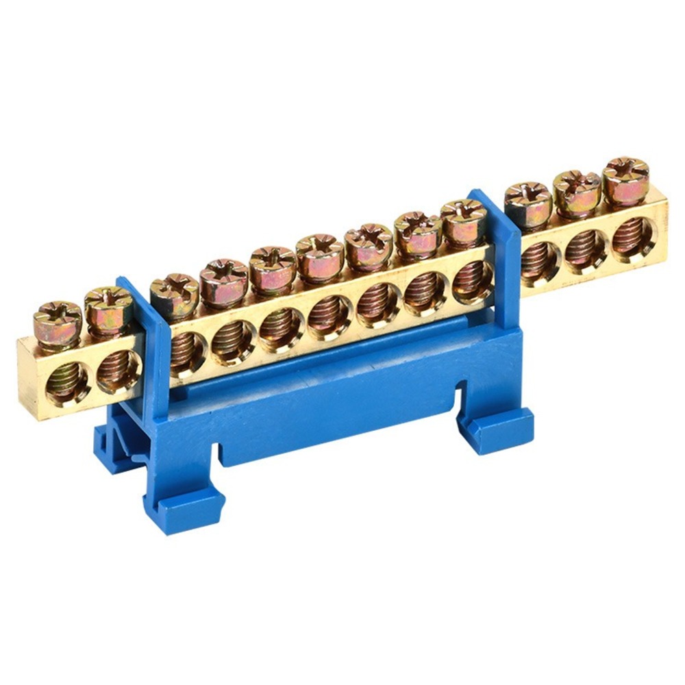 Шина «N» нулевая с синим изолятором тип «Стойка» Rexant 11-2355 на DIN-рейку 6x9 мм 12 групп (10 штук)