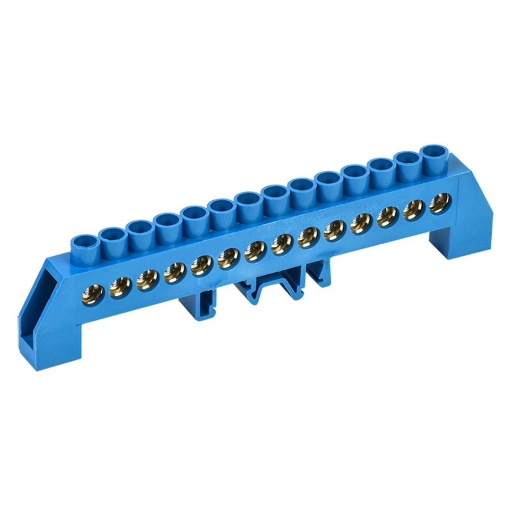 Шина «N» нулевая в комбинированном синем изоляторе Rexant 11-2319 на DIN-рейку 8x12 мм 14 групп (50 штук)