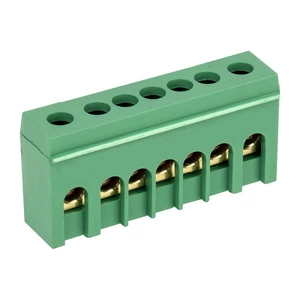 Нулевые шины REXANT предназначены для электрического и механического соединения нулевых, защитных и фазных проводников. Шины выполнены из латунной шины, установленной на пластиковый изолятор или в изолятор, изготовленный из самозатухающего пластика. Технические характеристики: Сечение шины: 6х9 мм Типоисполнение: с DIN-изолятором Номинальный ток: 80 А Номинальное напряжение: 450 В Максимальное поперечное сечение проводника: 16 мм² Температура эксплуатации: -40...+50 °C Среднее значение относительной влажности эксплуатации не более 90%