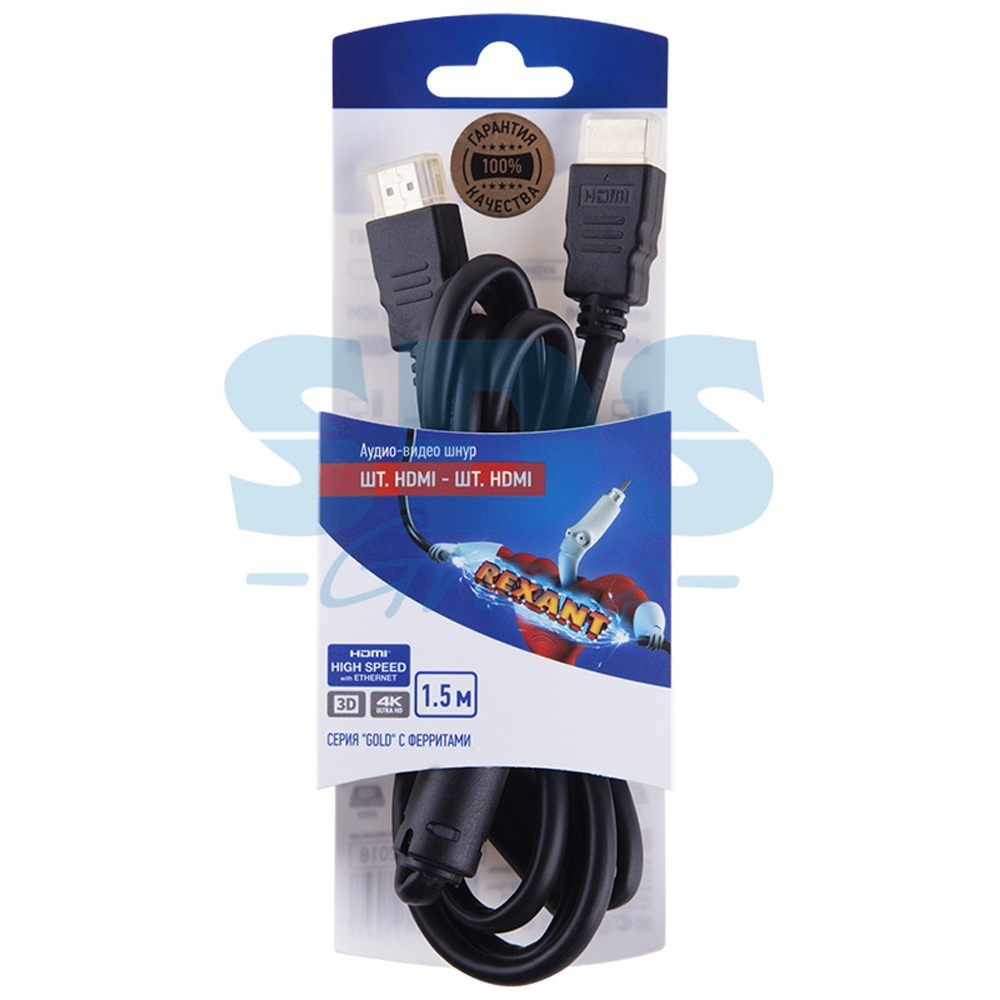 Шнур HDMI Rexant 06-3101 HDMI gold с ферритами 1.5m