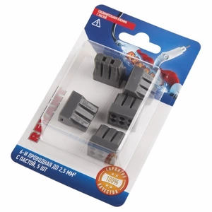 Электромонтажные экспресс-клеммы предназначены для соединения 6 проводов между собой (алюминиевые и медные как одножильные, так и многожильные). Подключение осуществляется способом проталкивания до упора очищенного от изоляции провода в свободное гнездо. Клеммы наполнены специальной контактной пастой, которая создает барьер для попадания влаги внутрь разъёма, а так же препятствует окислению проводников. Клемма имеет 6 контакта, напряжение 400 В, Максимальным током 24А, Поддерживаемое сечение: от 1,0 до 2,5 мм2. Рабочая температура: -45ºC to +80ºC