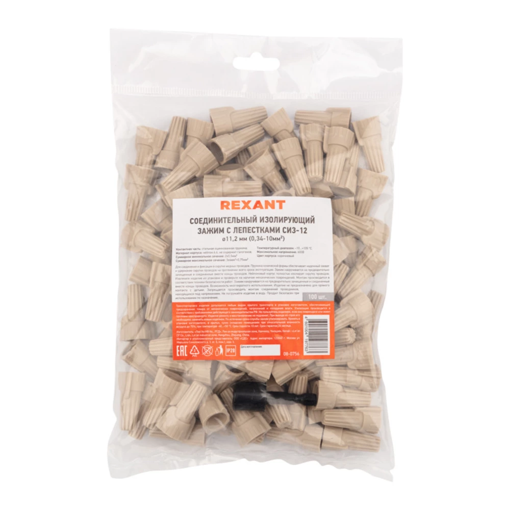 Соединительный изолирующий зажим Rexant 08-0756 СИЗ-12 11,2 мм (1-12,75 мм), коричневый (100 штук)