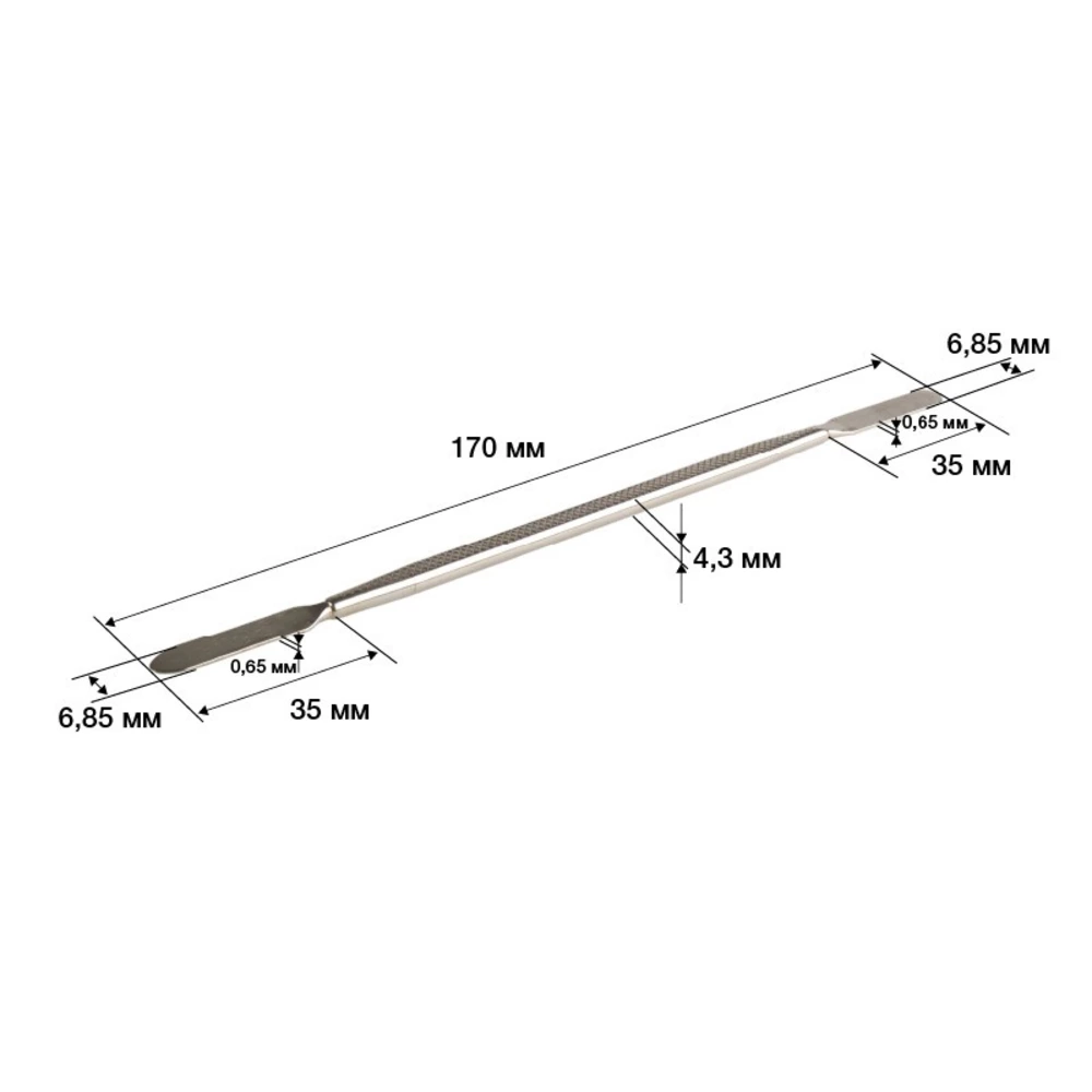 Спуджер металлический (лопатка двухсторонняя) 170 мм, выполнен из высокоуглеродистой стали, что обеспечит максимально долгий срок службы. Инструмент представляет из себя одну целую конструкцию. Металлическая лопатка, предназначенная для вскрытия и разборки корпусов мобильных телефонов, ноутбуков, планшетов. Простой и надежный инструмент, который может пригодиться на работе и в быту (подходит для вскрытия клавиатуры ноутбука, вскрытия корпусов практически любого мобильного телефона, позволяет подцепить глубоко расположенную батарейку). Рабочие поверхности: узкие со скругленными краями. Материал: высокоуглеродистая сталь Размер: 170 мм