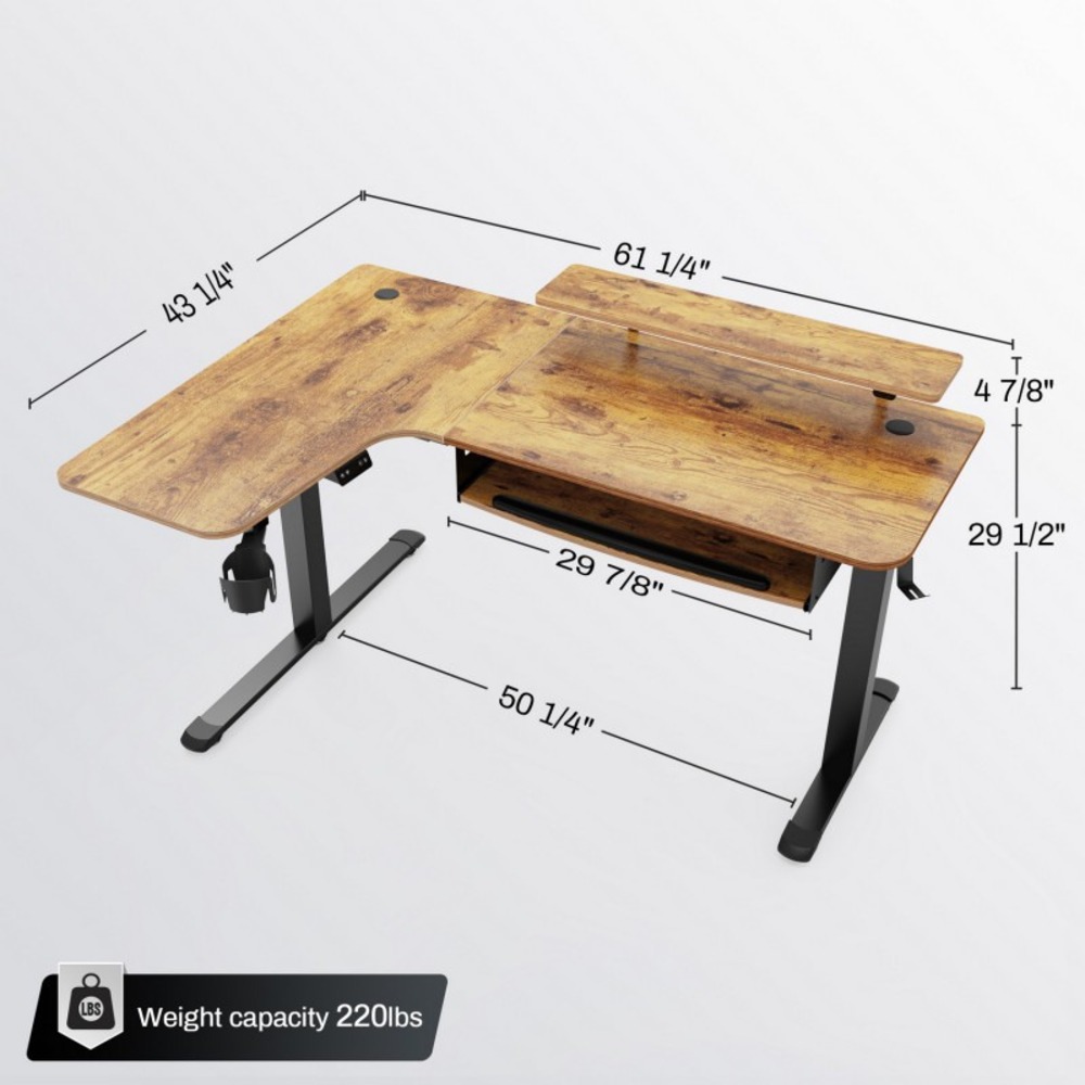 Угловой компьютерный стол Eureka L60 Gaming Desk c электрической регулировкой по высоте - идеальный выбор тех, кому необходимо расширенное пространство для работы. L60 имеет 60-дюймовую столешницу с гладким покрытием в стиле натуральной деревяной доски. На столе Eureka L60 можно с лёгкостью разместить несколько мониторов и необходимые девайсы для осуществления вашей деятельности. А такие решения по организации пространства, как надстройка для монитора и подставка под клавиатуру увеличат рабочее пространство минимум на 25%ю Стол регулируется по высоте и не вибрирует при подъёме/опускании, благодаря плавному пуску/остановке. Улучшенный многофункциональный контроллер с передней стороны стола имеет 2 USB порта и может хранить 4 предварительно запрограммированных высоты. А интеллектуальный датчик предотвращения столкновений Eureka был специально разработан для обеспечения безопасности объектов вокруг вашего стола при изменении высоты. Вам не надо волноваться о том, что стол столкнется с принтером или офисным шкафом, датчик защиты от столкновений не позволит столу ударить предметы вокруг стола. А благодаря специальной системе управления кабелями, на вашем столе никогда не будет запутанных проводов.