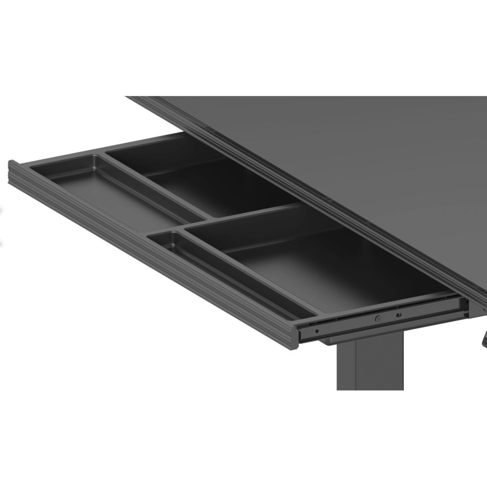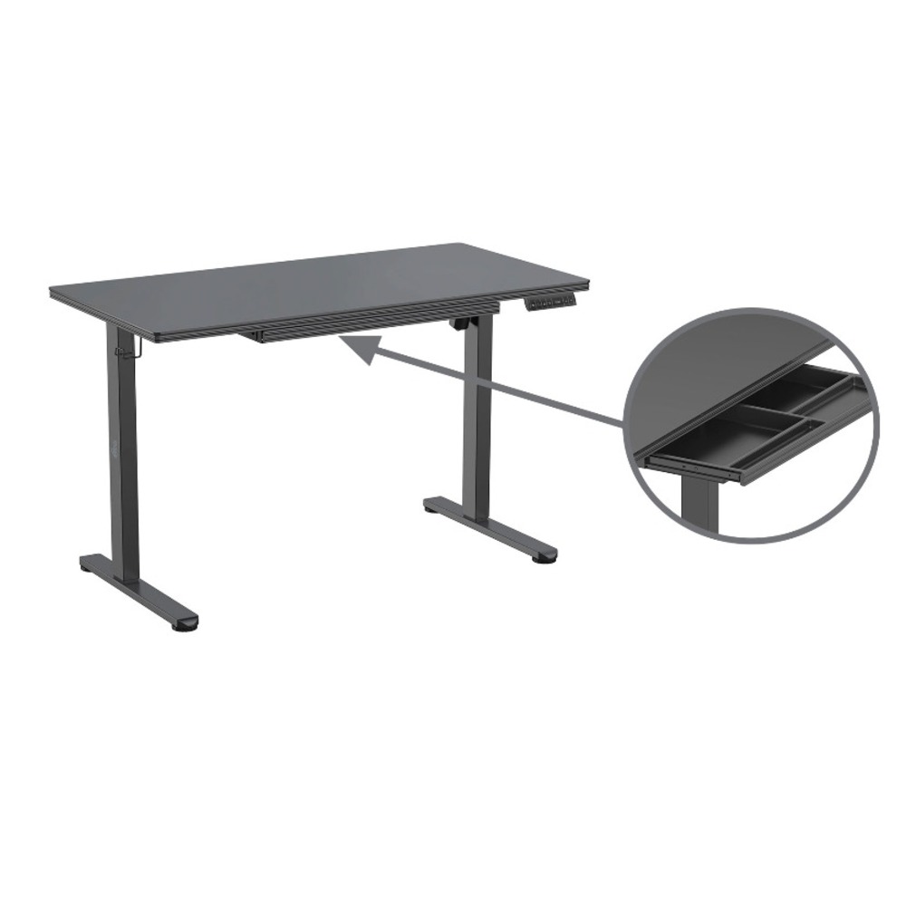 | Материал | закаленное стекло и МДФ (столешница), металл (рама и ножки), пластик (ящик, корпус управляющего элемента) |