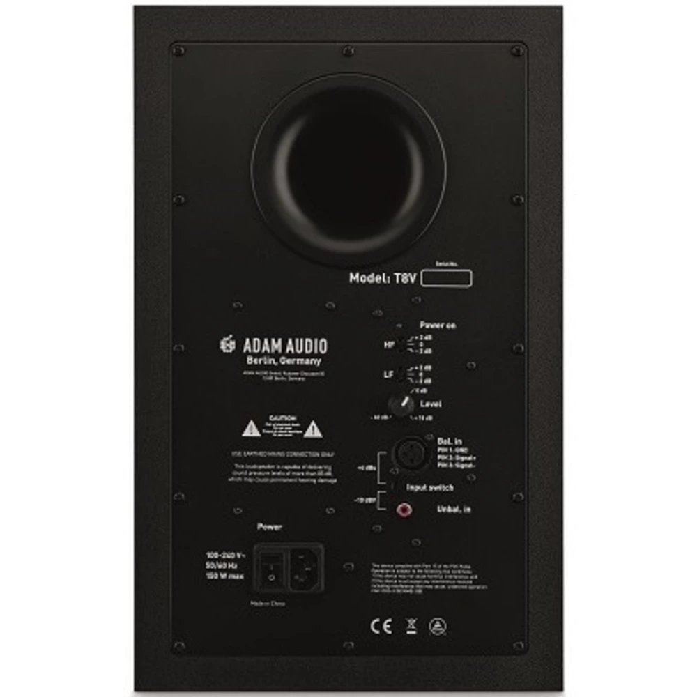 ADAM T8V — доступный профессиональный 2-полосный монитор ближнего поля. Диапазон нижнего регистра доходит до 36 Гц, поэтому T8V подойдет для продюсеров материала с насыщенными басами. Монитор активный, снабжен усилителем Class D на 80 Вт для НЧ- и ВЧ-динамиков. Волновод используется тот же, что и в премиум-серии S, поэтому пользователь получает широкую зону наилучшего восприятия. Фазоинвертор монитора находится сзади. Широкий частотный и динамический диапазон, прозрачный звук и компактность делают монитор подходящим для продакшена музыки, постпродакшена для видео и работы в вещании.Кроме того, монитор отличает крайне малым уровнем искажений в СЧ- и ВЧ-регистрах. Гарантия на T8V составляет 5 лет.
