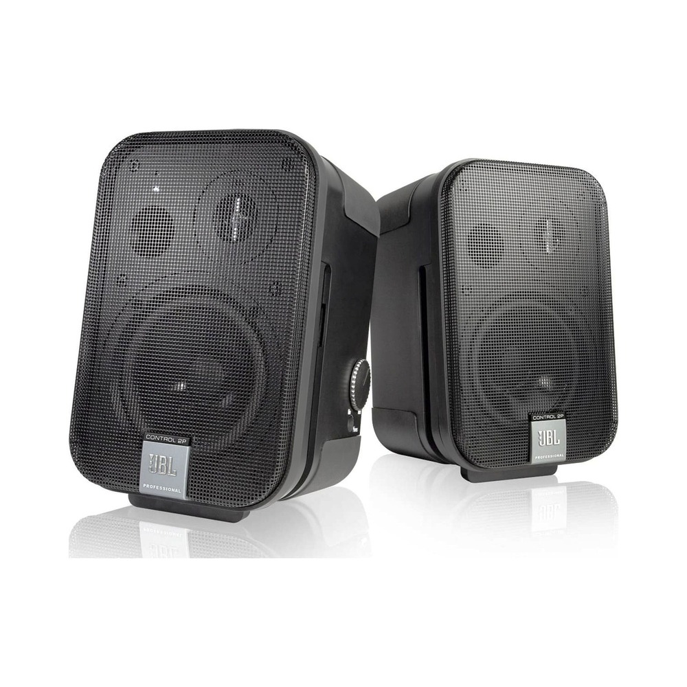 JBL Control 2P/230 Stereo Set. Комплект: C2PM/230 Активный Мастер-монитор + пассивный монитор, блок питания и 2 наклонные подставки. 5.25" НЧ, 0.75" ВЧ Polycarbonate Dome Tweeter, Мощность усилителя 2 х 35Вт, 2 балансных комбо XLR/1/4" Jack и 2 небалансных RCA входы, регулятор громкости, стерео выход Jack для наушников, регулятор ВЧ.