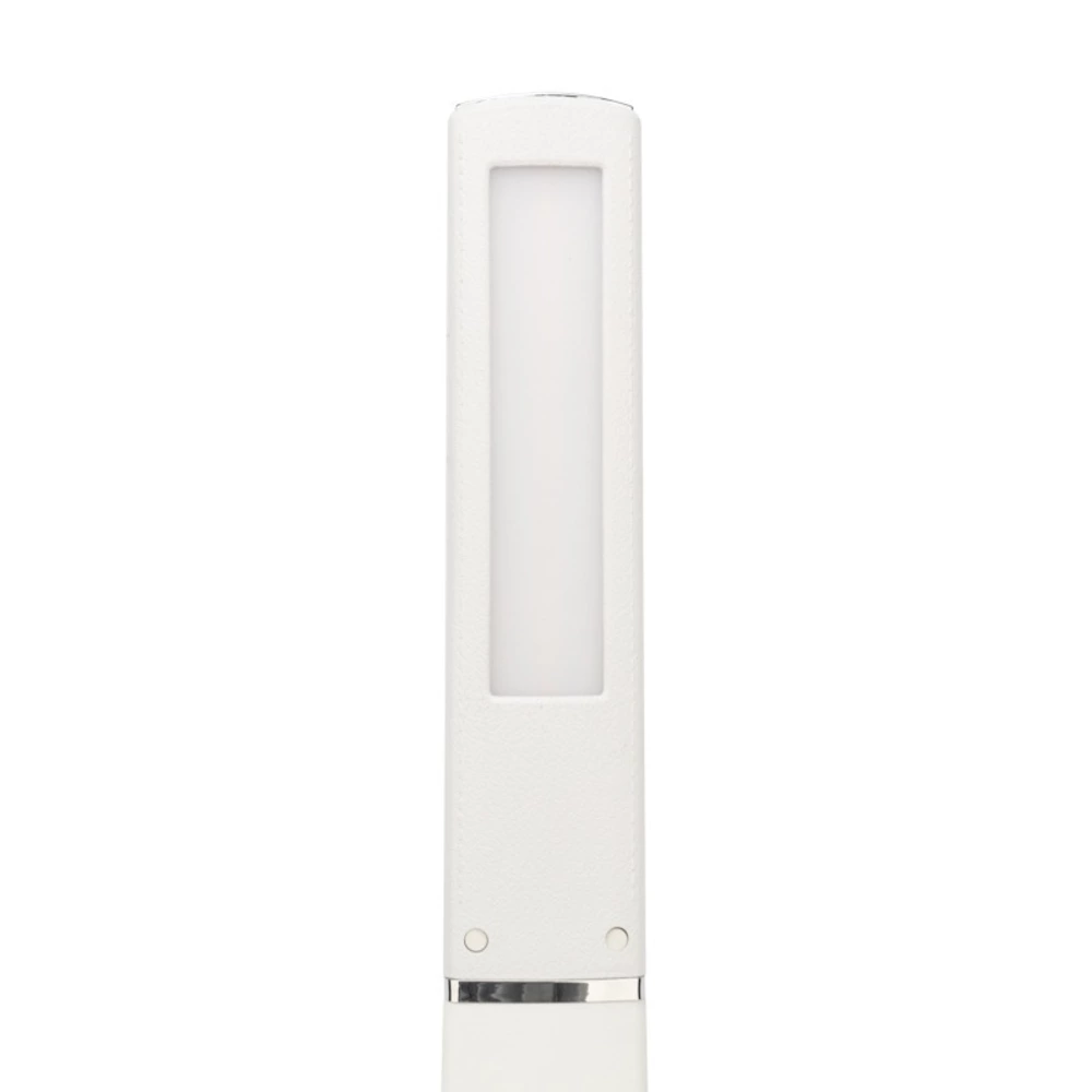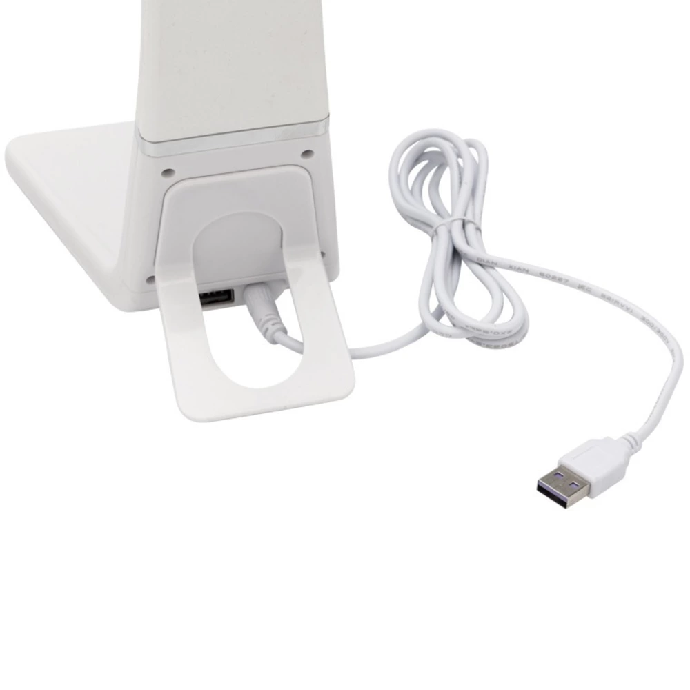 Настольный диммируемый светильник REXANT Cesar идеально подходит в качестве прикроватного светильника благодаря регулируемому мягкому свету и лаконичному дизайну. Устройство дополнено встроенным USB портом для зарядки гаджетов. Декорирован специальным материалом софт-скин с эффектом тиснения кожи. Светильники REXANT – это высокое качество освещения по приятной цене. Тип источника света: LED Световой поток: 750 Лм Мощность светильника: 10 Вт Индекс цветопередачи (CRI): >80 Коррелированная цветовая температура основного света (в сфере): 2700-6500 К Переменный/постоянный ток (AC/DC): АС Диммирование: встроенный Напряжение питания: 220 В Класс защиты от поражения током: II Температурный режим: +5...+40 °С Цвет корпуса: белый Коэффициент пульсации: <5% Степень защиты: IP20 Класс энергоэффективности: A КСС Д Материал корпуса: ABS пластик Материал рассеивателя: светопропускающий полимер Тип крепления: на основании Размеры: 185х470х135 мм