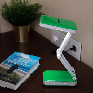 Складной настольный светильник с несколькими режимами свечения Несколько режимов работы: 1 Яркий 100% мощности2 Экономичный 50% мощности компактные размеры Не требует батареек До 6 часов непрерывной работы 1. Светодиод: SMD 24шт 2. Мощность: 1,5 Вт 3. Переключатель: два режима работы тускло/ярко 4. Складной размер: 13 * 7 * 27.5 см 5. Зарядное напряжение: 110-240 В 6 . Тип батареи: свинцово-кислотная батарея 700 мАч 7. Время зарядки: 10-12 часов 8. Время разряда: 3-6 часов Внимание: не включайте фонарь во время зарядки.