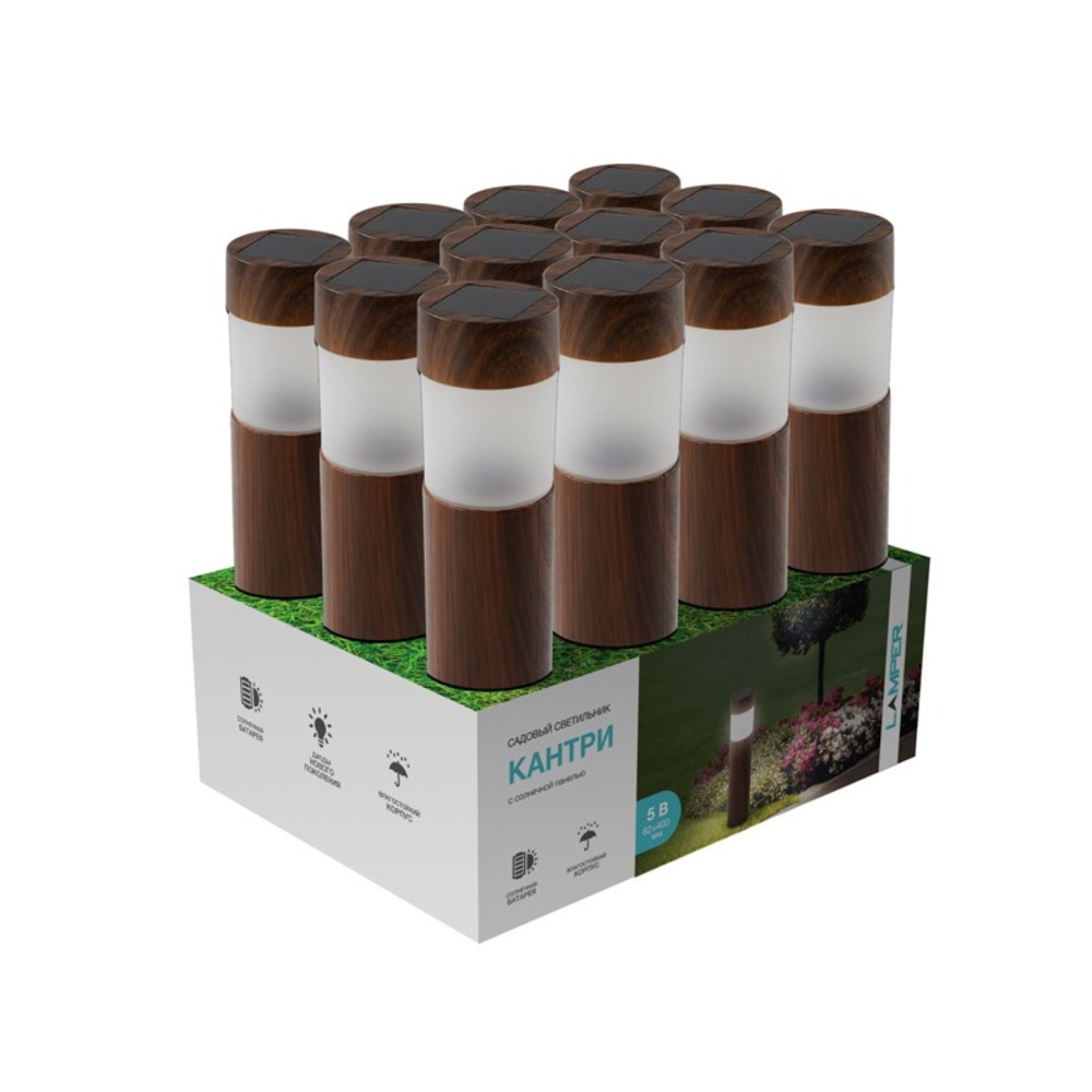 Лаконичный садовый светильник LAMPER Кантри с солнечной панелью и аккумулятором оживляет любое пространство и создает неповторимую атмосферу уюта. Уникальный дизайн привнесет новые яркие акценты и украсит любое пространство своим лаконичным и оригинальным дизайном корпуса с текстурой коры дуба. Приятное белое свечение будет радовать долгое время благодаря прочной конструкции и долговечным диодам. Высокая степень IP защищает от замыкания при попадании влаги на устройство. Светильник LAMPER – идеальное устройство для декоративного уличного освещения, не требующее прокладки проводов и дополнительных элементов установки. Размеры: Ø 62х400 мм Тип диодов: LED Цвет свечения: белый Материал корпуса: пластик Степень защиты: IP44 Мощность: 4 Вт Напряжение: 5 В Время зарядки: 5 ч Время работы: 8 ч